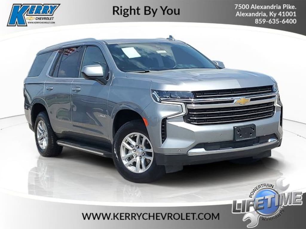 Home of the Lifetime Powertrain Protection! Proudly Serving: Cincinnati, Dayton, Lexington, Louisville, Hamilton, Mason, Sharonville, Beavercreek, Springdale, West Chester, Monroe, Fairfield, Kenwood, Newport, Covington, Fort Mitchell, Fort Thomas, Fort Wright, Independence, Florence, Union, Alexandria, Butler, Falmouth, Dry Ridge, and all of greater Cincinnati, Ohio, Indiana, and Northern Kentucky. 2023 Chevrolet Tahoe LT Sterling Gray Metallic ANDROID AUTO/APPLE CARPLAY, BLUETOOTH, TOUCH TO START, HEATED SEATS, BACK UP CAMERA, LEATHER, REMOTE START, 7 PASSENGER, FOUR WHEEL DRIVE 4WD, ONE OWNER, 4WD, Black Leather. CARFAX One-Owner.