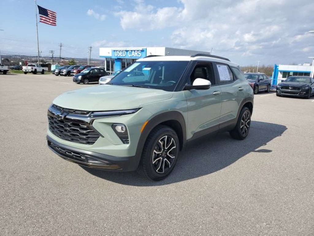 Home of the Lifetime Powertrain Protection! Proudly Serving: Cincinnati, Dayton, Lexington, Louisville, Hamilton, Mason, Sharonville, Beavercreek, Springdale, West Chester, Monroe, Fairfield, Kenwood, Newport, Covington, Fort Mitchell, Fort Thomas, Fort Wright, Independence, Florence, Union, Alexandria, Butler, Falmouth, Dry Ridge, and all of greater Cincinnati, Ohio, Indiana, and Northern Kentucky. 2024 Chevrolet TrailBlazer ACTIV Cacti Green ANDROID AUTO/APPLE CARPLAY, BLUETOOTH, TOUCH TO START, TOUCH SCREEN, HEATED SEATS, BACK UP CAMERA, MOONROOF SUNROOF, ALL WHEEL DRIVE, CLEAN VEHICLE HISTORY...NO ACCIDENTS, ONE OWNER. CARFAX One-Owner. Clean CARFAX. Certified. 26/29 City/Highway MPG