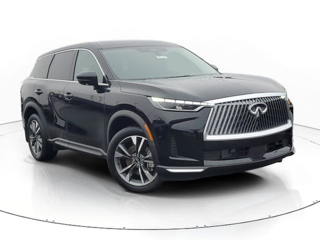 Certified. Black Obsidian 2026 INFINITI QX60 PURE FWD 9-Speed Automatic 2.0L I4 PDI Turbocharged DOHC 16V 268hp *CERTIFED*, *1 OWNER*, *LIFETIME POWERTRAIN WARRANTY*, 3rd row seats: bench, Apple CarPlay/Android Auto, Auto High-beam Headlights, Blind Spot Warning, Brake assist, Dual front impact airbags, Dual front side impact airbags, Electronic Stability Control, Four wheel independent suspension, Fully automatic headlights, Heated Front Bucket Seats, Knee airbag, Navigation system: Google Built-in, Overhead airbag, Power Liftgate, Power moonroof: Panoramic, Rear Parking Sensors, Reclining 3rd row seat, Remote keyless entry, Steering wheel mounted audio controls, Tailorfit-Appointed Seating Surfaces, Traction control.