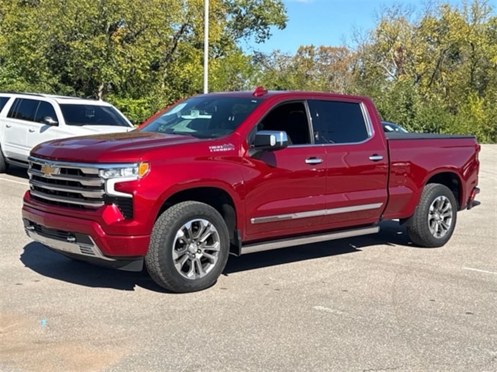 Home of the Lifetime Powertrain Protection! Proudly Serving: Cincinnati, Dayton, Lexington, Louisville, Hamilton, Mason, Sharonville, Beavercreek, Springdale, West Chester, Monroe, Fairfield, Kenwood, Newport, Covington, Fort Mitchell, Fort Thomas, Fort Wright, Independence, Florence, Union, Alexandria, Butler, Falmouth, Dry Ridge, and all of greater Cincinnati, Ohio, Indiana, and Northern Kentucky. 2022 Chevrolet Silverado 1500 High Country Cherry Red Tintcoat ANDROID AUTO/APPLE CARPLAY, BLUETOOTH, WI FI CAPABLE, BACK UP CAMERA, LEATHER, REMOTE START, FOUR WHEEL DRIVE 4WD, 10-Speed Automatic, 4WD, Jet Black Leather. CARFAX One-Owner.