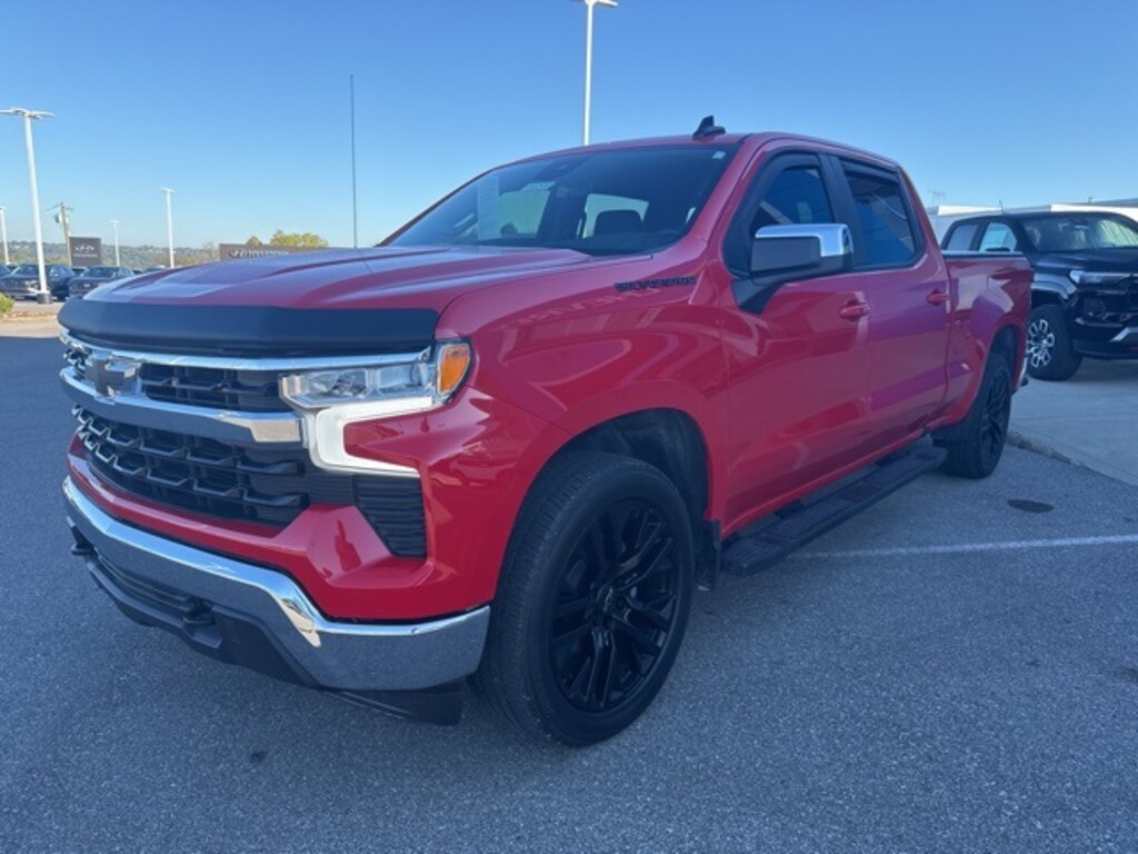 Home of the Lifetime Powertrain Protection! Proudly Serving: Cincinnati, Dayton, Lexington, Louisville, Hamilton, Mason, Sharonville, Beavercreek, Springdale, West Chester, Monroe, Fairfield, Kenwood, Newport, Covington, Fort Mitchell, Fort Thomas, Fort Wright, Independence, Florence, Union, Alexandria, Butler, Falmouth, Dry Ridge, and all of greater Cincinnati, Ohio, Indiana, and Northern Kentucky. 2023 Chevrolet Silverado 1500 LT Red Hot BLUETOOTH, BACK UP CAMERA, 10-Speed Automatic, 4WD, Black Cloth. Clean CARFAX.
