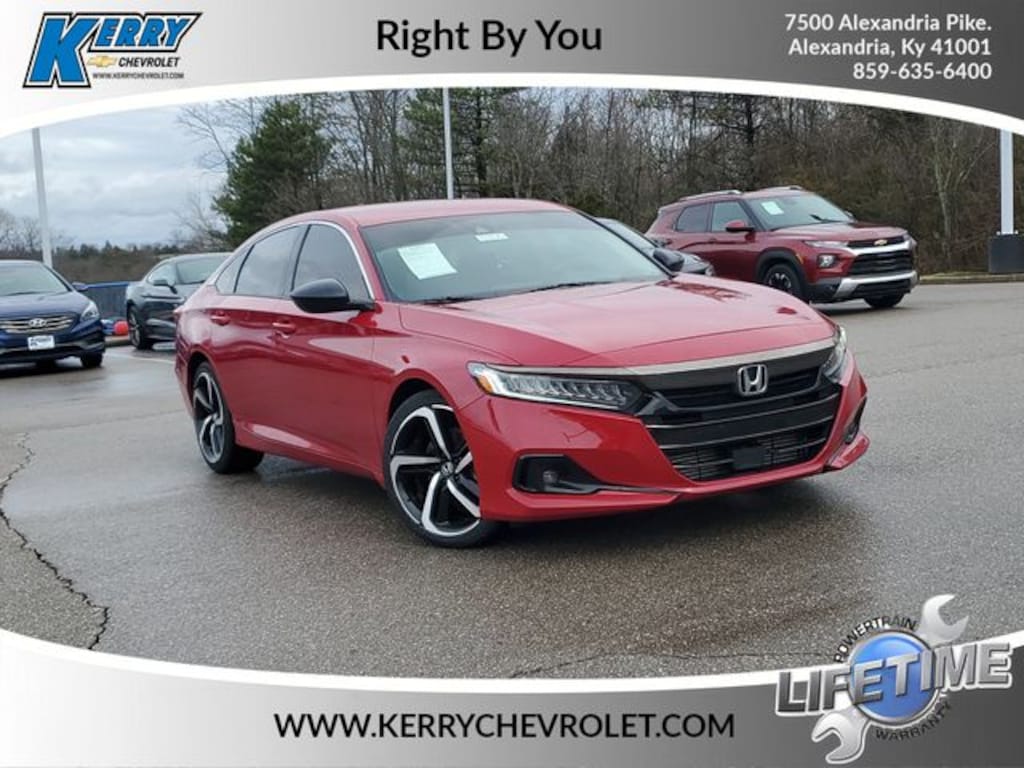 Home of the Lifetime Powertrain Protection! Proudly Serving: Cincinnati, Dayton, Lexington, Louisville, Hamilton, Mason, Sharonville, Beavercreek, Springdale, West Chester, Monroe, Fairfield, Kenwood, Newport, Covington, Fort Mitchell, Fort Thomas, Fort Wright, Independence, Florence, Union, Alexandria, Butler, Falmouth, Dry Ridge, and all of greater Cincinnati, Ohio, Indiana, and Northern Kentucky. 2021 Honda Accord Sport Special Edition Red BLUETOOTH, TOUCH TO START, TOUCH SCREEN, BACK UP CAMERA, FUEL SAVER, Black w/Leather-Trimmed Seats. 29/35 City/Highway MPG