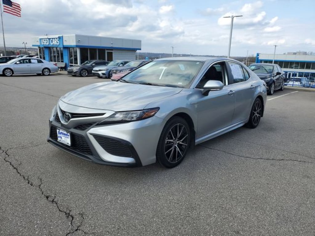 Home of the Lifetime Powertrain Protection! Proudly Serving: Cincinnati, Dayton, Lexington, Louisville, Hamilton, Mason, Sharonville, Beavercreek, Springdale, West Chester, Monroe, Fairfield, Kenwood, Newport, Covington, Fort Mitchell, Fort Thomas, Fort Wright, Independence, Florence, Union, Alexandria, Butler, Falmouth, Dry Ridge, and all of greater Cincinnati, Ohio, Indiana, and Northern Kentucky. 2023 Toyota Camry SE Cavalry Blue ANDROID AUTO/APPLE CARPLAY, TOUCH SCREEN, HEATED SEATS, BACK UP CAMERA, MOONROOF SUNROOF, ONE OWNER, Black w/Sport SofTex Seat Trim w/Fabric Inserts, 16" Alloy wheels, ABS brakes, Active Cruise Control, Blackout Package (TMS), Electronic Stability Control, Front dual zone A/C, Heated door mirrors, Illuminated entry, Low tire pressure warning, Remote keyless entry, Traction control. CARFAX One-Owner. 28/39 City/Highway MPG